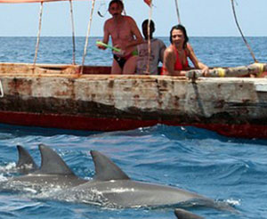 On arrival, you’re given a short saf ety briefing and the dos and don’ts when faced with these wild animals. Then, you board a traditional ocean going dhow and set sail on the Indian Ocean in search of dolphins.